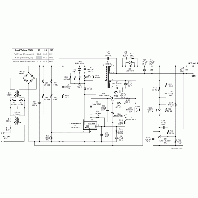 Product specification Design type The Design Example Reports (DER) topology Flyback RoHS? Yes Vout 1 19.00 V Vin (min) 90 Vin (Max) 265 Number of outputs 1 The output power 65.00 W. Associated with Parts TOP269EG Gerber File Rd243gerber.zip