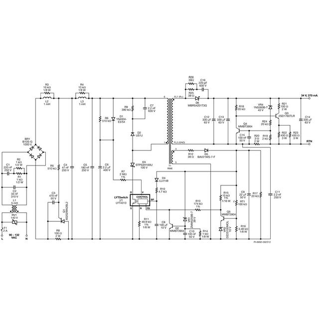 Specifications Design Type Reference Design Reports (RDR) Topology Flyback RoHS? Yes Vout 1 34.00 V Vin (min) 90 Vin (max) 132 TRIAC dimmable? Yes Efficiency 83.00% Isolated? Yes Number of outputs 1 Output Power 12.60 W PFC? Yes Associated Parts LYT4313 Gerber File rd347gerber.zip