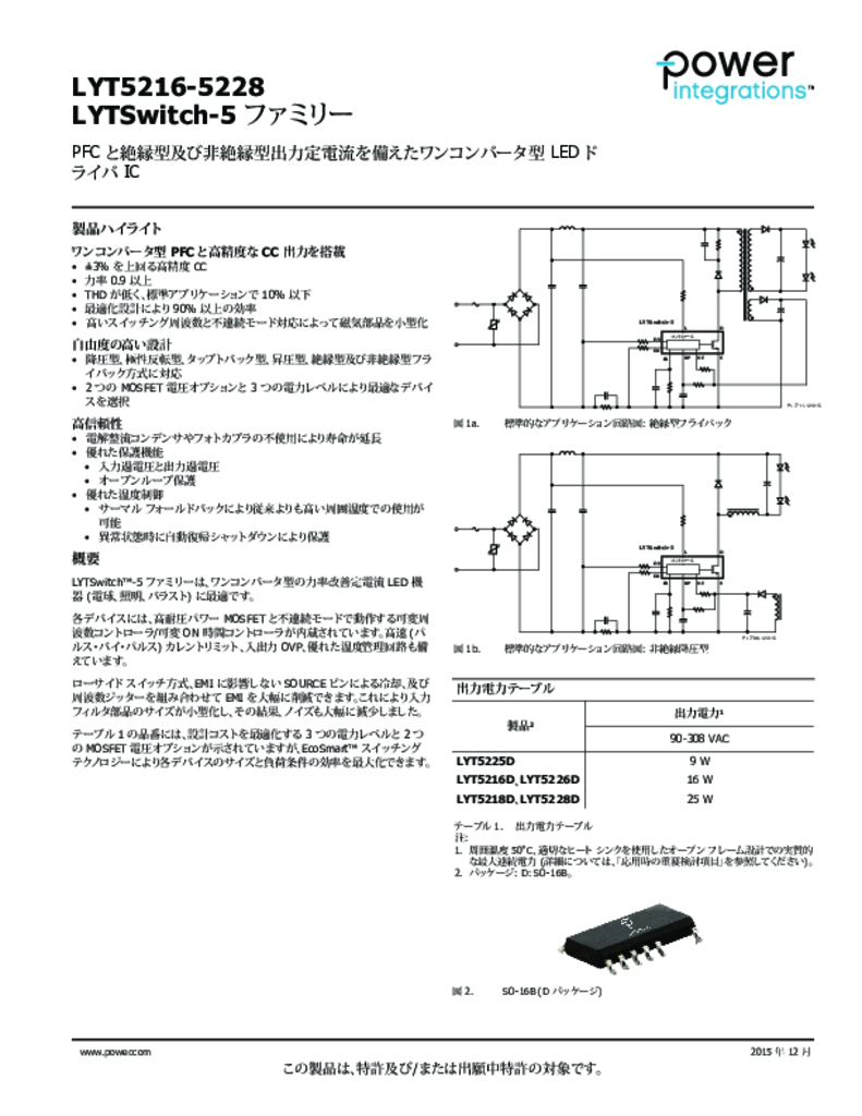 LYTSwitch-5デ,タシ,ト PFCと絶縁型及び非絶縁型出力定電流を備えたワンコンバ,タ型ledドラ,etc,バIC PDFを表示 PDFをダウンロ,ド アプリケ,ション 製品 LYTSwitch-5