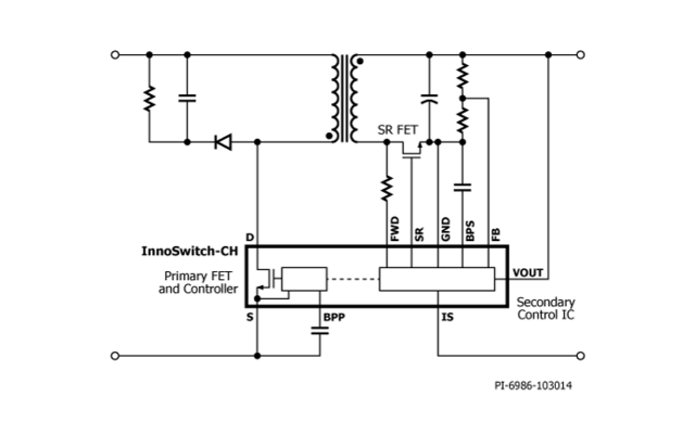 InnoSwitch™-CH系列集成电路将主、次和反馈电路集成在一个表面安装的离线反激开关IC中,InnoSwitch-CH集成了主FET、主侧控制器和副侧同步整流控制器。新的集成电路还包括一项创新的新技术FluxLink™,该技术可以安全地跨越隔离屏障,消除对光耦合器的需求。副侧控制器的集成实现了快速瞬态响应的同步整流FET驱动,超过了所有世界范围内的效率标准,包括行为规范版本5和DoE版本6的规定。
