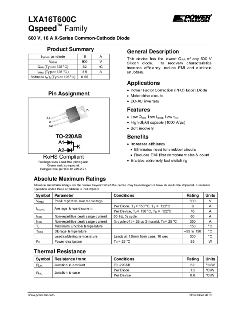 600v, 16a x系列共阴极二极管